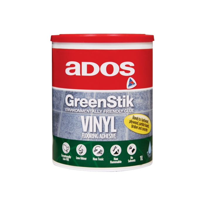 ADOS GreenStik Vinyl Flooring Adhesive is an environmentally and user friendly adhesive with professional strength. It is a multi purpose flooring adhesive that will adhere to almost all types of flooring materials such as vinyl and carpet with all types of backing, ranging from foam to hessian.